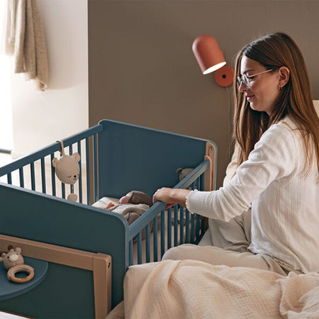 Entdecke unser höhenverstellbares Beistellbett, das sich mühelos an jedes Elternbett anschmiegt und Geborgenheit schafft. Little Cloud sorgt dafür, dass dein Baby nachts deine Nähe spürt und sich durch deinen Atem beruhigt - die beste Grundlage für den gesunden Schlaf, den es zum Wachsen benötigt. Die Gitterseite lässt sich leicht mit einer Hand absenken und vereint Nähe und Komfort für ruhige(re) Nächte. Tagsüber schafft Little Cloud, ausgestattet mit Rollen, Vertrautheit und Flexibilität im Alltag. Little Cloud stärkt die Bindung zu deinem Kind und wurde sogar mit dem German Design Award 2025 ausgezeichnet.